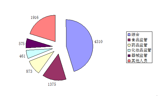 全省食品药品行政机构分布图 (二)事业单位(详见附表4) 各级食品药品监管事业单位总数277个,其中,省局直属事业单位6个,市州局直属事业单位43个,县区局直属事业单位228个。 二、人员情况 (一)行政机构人员情况(详见附表2) 2017年上半年,全省各级食品药品监管行政机构共有编制29226人,实际到岗26382人。 从所在部门看,综合在岗人员4310人,食品监管在岗人员1375人,药品监管在岗人员873人,化妆品监管在岗人员461人,博天堂娱乐监管在岗人员575人,其他岗位人员1916人。