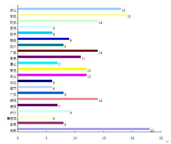 2017年上半年全省保健食品案件来源分布图 从主要违法主体看,以流通单位为主,共90件,生产单位4件,其他主体6件。 从案值划分看5万元以下的案件99件,5-20万元的案件1件,20-50万元的0件。 三、保健食品生产、经营企业日常监管情况(详见附表14) 2017年上半年,全省各级监管机构共检查保健食品生产企业685家次,检查保健食品品种399种次,抽检保健食品品种21批次,检出不合格0种次,发现违法违规的主题家数15家。 检查保健食品经营企业26874家次,检查企业次数38913家次,抽检保健食品品种批次1729批次,检出不合格保健食品品种16批次,发现违法违规主体家数351家。 第四部分 药品监督管理 一、药品行政受理情况 (一)药品生产企业许可情况(详见附表15) 截至2017年上半年,全省共核发药品生产许可证434张,原料药和制剂224家,生产原料药企业100家,生产化学药企业187家,生产中药企业(不含饮片)133家,生产中药企业(含饮片)298家。 2017年上半年全省药品新办及换证生产企业共15家:其中成都:7家;绵阳:1家;达州市:1家;广元市:3家;眉山市:1家;宜宾市:1家;自贡市:1家。
