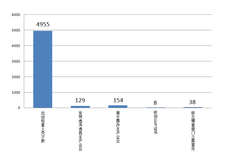 四、药品经营企业情况2018年上半年,全省期末实有企业数量30089家(其中生物制品7301家,专营中药材、中药饮片64家),本期新增2718家,本期减少2108家。 五、药品日常监管情况(一)药品生产企业日常监管情况2018年上半年,全省共检查生产企业1465家次,其中基本药物生产企业666家次,血液制品、注射剂等高风险品种生产企业126家次。出动检查人员4955人次,发现违法违规生产企业129家次,责令整改生产企业154家次,收回GMP证书8张,移交稽查部门立案查处38家。