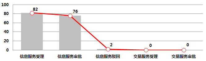 三、互联网药品服务机构审批情况2018年上半年,互联网药品信息服务受理82件,信息服务审批76件,信息服务驳回2件,交易服务受理0件,交易服务审批0件。详见附表8。